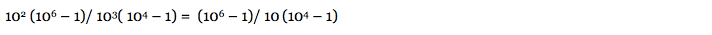 We start off solving the problem taking out common terms so that we can reduce the fraction. By taking 10² and 10³ common from the numerator and denominator respectively, the fraction becomes
